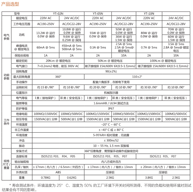 ◎ 產品壽命高達2萬次(YT02、YT05系列)