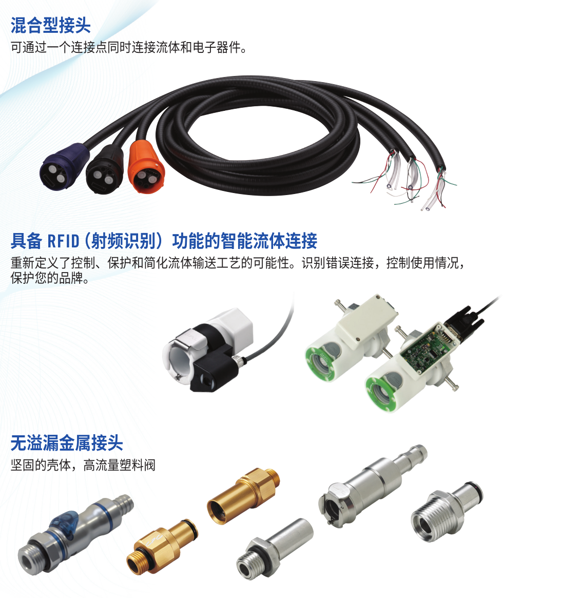 方案 讓流體和空氣連接更方便使用,更可靠,提高產(chǎn)品的模塊化和可維護性,提供更清潔,更快速,更安全,更智能的連接方式,使您的產(chǎn)品增值。如果您無法從我們數(shù)以千計的標(biāo)準(zhǔn)產(chǎn)品中找到完美的解決方案,或者您希望擺脫項目的連接器部分,以便專注于核心技術(shù),CPC Engineered Solutions可以提供幫助。