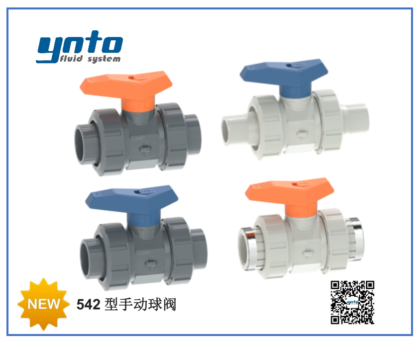 - 藍(lán)色手柄 542 球閥,采用 PE 材質(zhì)作為閥球密封。